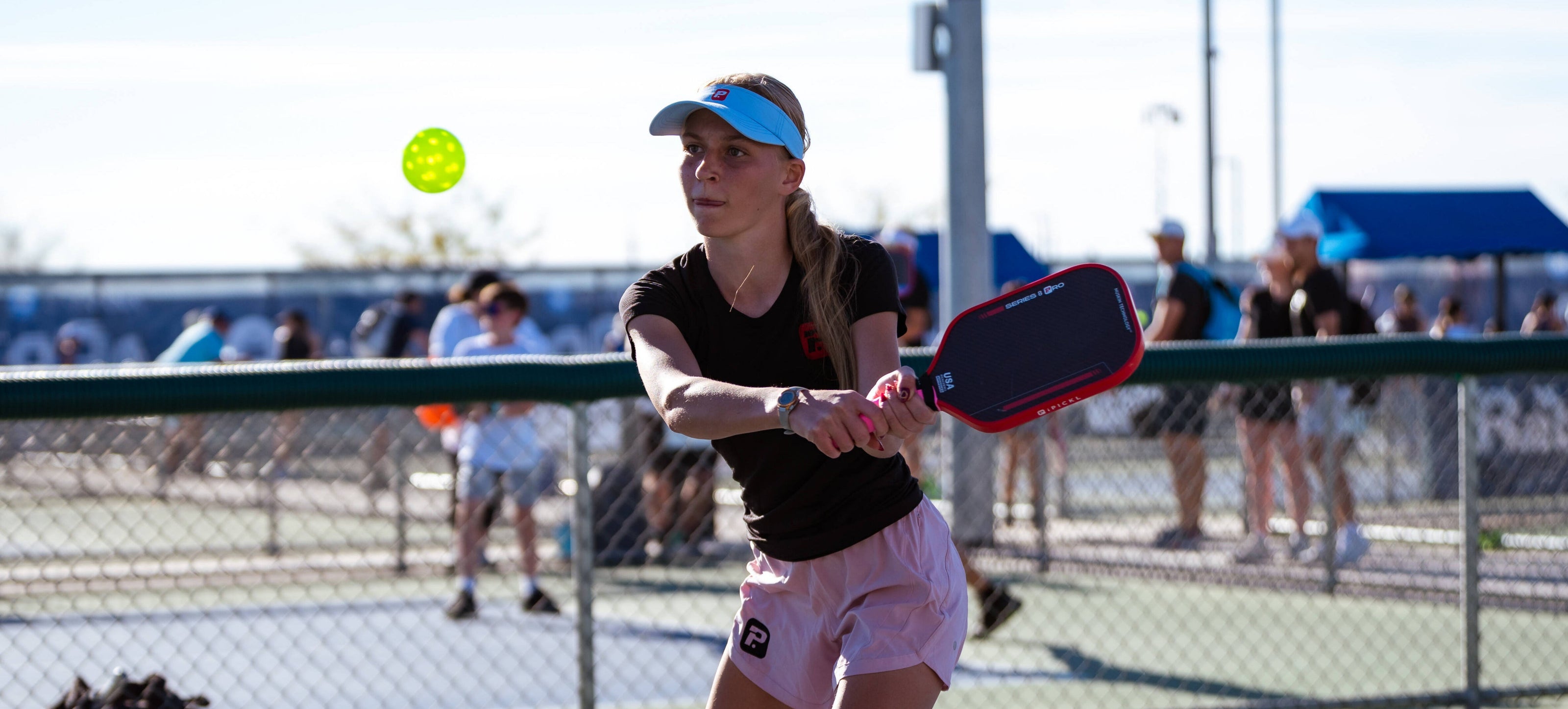 Molly first started playing pickleball during the pandemic when one of her older brothers would pay her with candy and donuts to drill with him. When she found out other girls played also, she was hooked! Known for her impressive defense and feisty style, Molly is a force to be reckoned with and regularly competes at the 4.5+ level, and it's only a matter of time before she makes waves in the pro scene. Off the court, Molly can usually be found practicing her nail art and giving her sisters and mom frequent manicures.